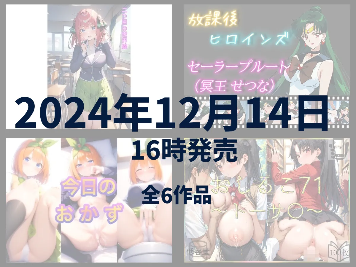 【6作品】2024年12月14日16時発売の二次創作同人まとめ 2025 11/26 日次同人 2024年12月14日2025年11月26日 あかね2024-12-14に発売された二次創作の同人をまとめて紹介します かな発売された作品は全部で6作品あるわよ 目次ホロライブ 【同人】エロライブ〜天○かなた ver.2 🛒FANZAへ進む ➚詳細を見る Fate おしるこ71〜トーサ〇〜 🛒FANZAへ進む ➚詳細を見る 彼女、お借りします ヒロインえっち 🛒FANZAへ進む ➚詳細を見る 五等分の花嫁 二つ目の世界線 🛒FANZAへ進む ➚詳細を見る 今日のおかず 五◯分の花嫁・中野 ◯葉 🛒FANZAへ進む ➚詳細を見る セーラームーン 放課後ヒロインズ セーラープルート(冥王せつな) 🛒FANZAへ進む ➚詳細を見る 日次同人 2024年12月の同人 よかったらシェアしてね! URLをコピーしました! URLをコピーしました!