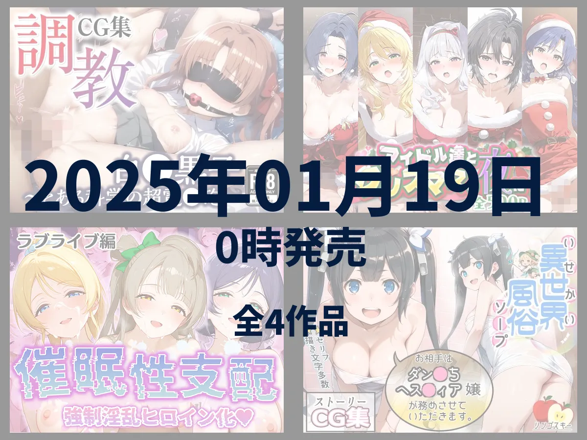 【4作品】2025年01月19日0時発売の二次創作同人まとめ 2025 11/26 日次同人 2025年1月19日2025年11月26日 あかね2025-01-19に発売された二次創作の同人をまとめて紹介します かな発売された作品は全部で4作品あるわよ 目次ラブライブ 【催●性支配】強●淫乱ヒロイン化 ラ○ライブ編 【東○希/絢○絵里/南 ○とり】 🛒FANZAへ進む ➚詳細を見る アイドルマスター アイドル達とクリスマスの夜に 🛒FANZAへ進む ➚詳細を見る ダンジョンに出会いを求めるのは間違っているだろうか 異世界風俗 お相手はダン〇ちヘス〇ィア嬢が務めさせていただきます 🛒FANZAへ進む ➚詳細を見る とあるシリーズ 調教CG集 白●黒子〜とある科学の超電●砲〜【全250枚】 🛒FANZAへ進む ➚詳細を見る 日次同人 2025年1月の同人 よかったらシェアしてね! URLをコピーしました! URLをコピーしました!
