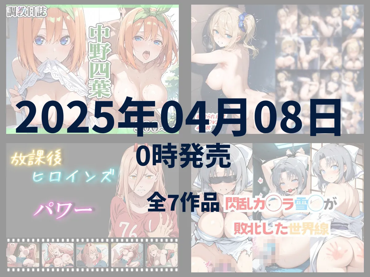 【7作品】2025年04月08日0時発売の二次創作同人まとめ 2025 11/26 日次同人 2025年4月8日2025年11月26日 あかね2025-04-08に発売された二次創作の同人をまとめて紹介します かな発売された作品は全部で7作品あるわよ 目次ゼンレスゾーンゼロ ニコとリンに毎晩アヘ顔アクメで搾られるCG集 🛒FANZAへ進む ➚詳細を見る ホロライブ 俺の常◯トワが寝取られた 🛒FANZAへ進む ➚詳細を見る かぐや様は告らせたい 寝取られ日誌 早坂〇V2 🛒FANZAへ進む ➚詳細を見る チェンソーマン 放課後ヒロインズ パワー 🛒FANZAへ進む ➚詳細を見る ソードアート・オンライン 調教日誌 リーファ 🛒FANZAへ進む ➚詳細を見る 五等分の花嫁 調教日誌 五等分の花嫁 中野四葉 🛒FANZAへ進む ➚詳細を見る 閃乱カグラ 閃乱カ◯ラ雪◯が敗北した世界線 🛒FANZAへ進む ➚詳細を見る 日次同人 2025年4月の同人 よかったらシェアしてね! URLをコピーしました! URLをコピーしました!