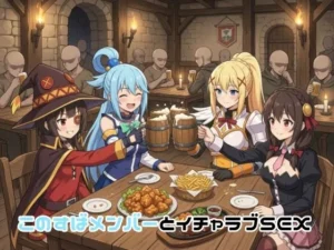 このすば3人娘がエロ罰ゲームでアヘ顔セックス! デカチンかずまハーレム孕ませ