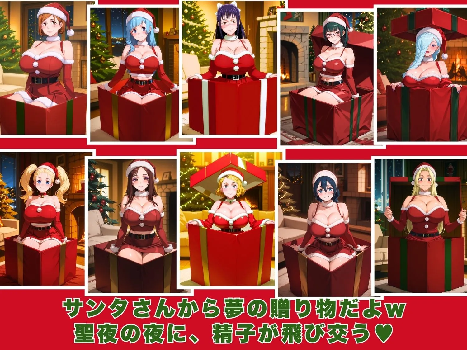 10人のエロサンタ〜呪●廻戦〜ってCG集だよ。モテないキモ男たちにとってはクリスマスなんて寂しいだけのイベントだけど、そんな彼らに届いたプレゼントなんだ