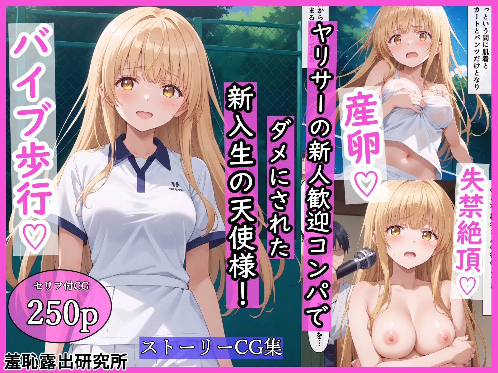 羞恥露出研究所が当サークルで、PIXIVに羞恥、露出、晒し者、辱めシチュエーションのAIイラストを投稿してるわ