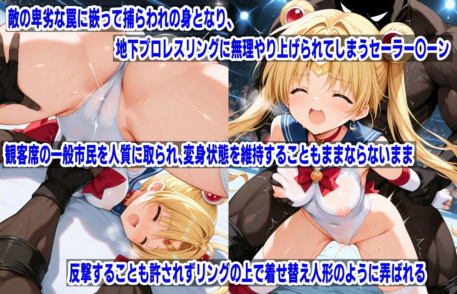 数千人の一般市民が洗脳され、連れ去られる事件が発生調査の為に潜入したセーラー〇ーンであったが、それは変身ヒロインたちの力を我が物にするため異世界の勢力と手を組んだ秘密結社の罠だった敵の卑劣な罠に嵌って捕らわれの身となり、地下プロレスリングに無理やり上げられてしまうセーラー〇ーン観客席の一般市民を人質に取られ、変身状態を維持することもままならないまま反撃することも許されずリングの上で着せ替え人形のように弄ばれる白く薄いレオタードは汗でぴったりと少女の身体に張り付き、美少女戦士の柔肌をいやらしく浮き上がらせる屈強な男性レスラー型の敵から繰り出される鉄骨のリングがギシギシと軋むほどの容赦ない攻撃それは少女の華奢な体を次々と破壊していく初めは応援していた観客席の市民たちも正義のヒロインの無様を前に、次第に苛立ちの色を隠さないようになる洗脳されているとは言え、それはあまりにも惨たらしい光景だった卑猥な歓声と罵声を浴び、少女の正義の心は徐々に砕き折られていく美少女戦士たちのエキシビジョンはまだ始まったばかり…(画像生成AIを利用して作成しています)(登場人物は全員成人しています。また作中描写は同意の上でのプレイです)(犯罪、違法行為を美化または助長する意図はございません)(AI生成の為、不自然な描写も含まれています。ご了承ください)