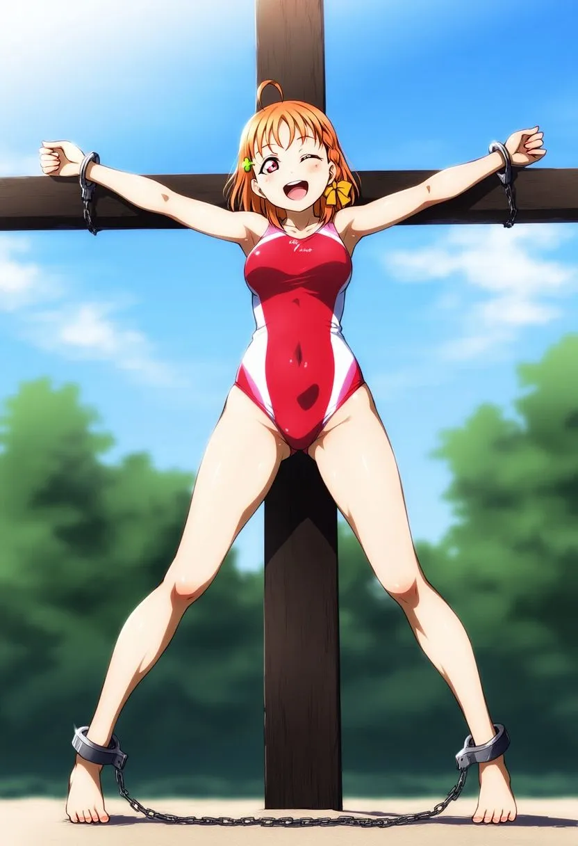 あかねこの作品はAIイラストのCG集で、拘束されたラ〇ライ〇!サ〇シ〇イ〇!!の〇海千〇さんのイラストが48枚収録されてるよ
