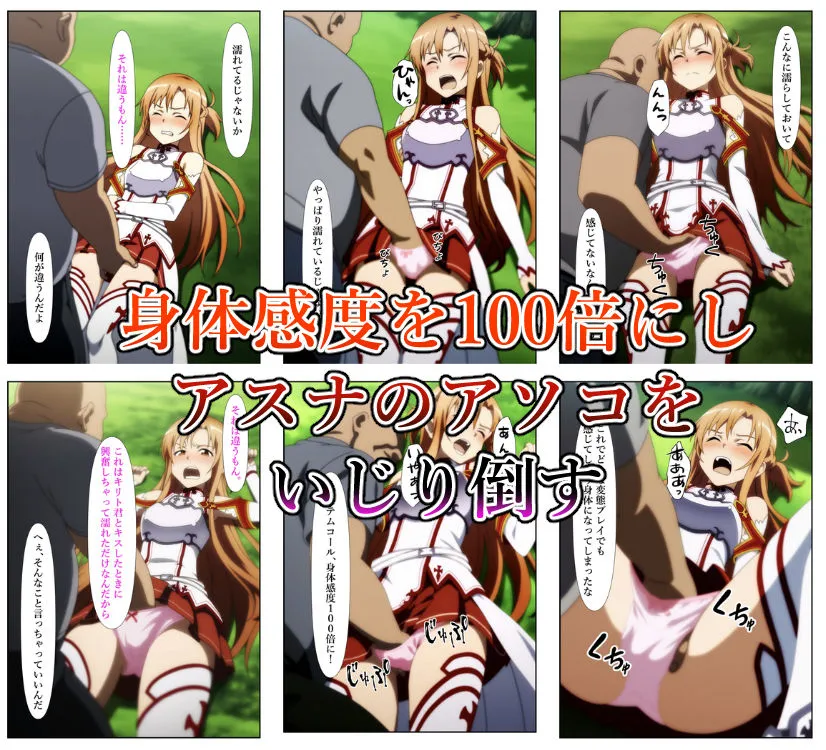 身体感度100倍でアスナの秘部を責めるシーン8p、拘束具発動で下半身露わにしてクリ責めするシーン11pでしょ