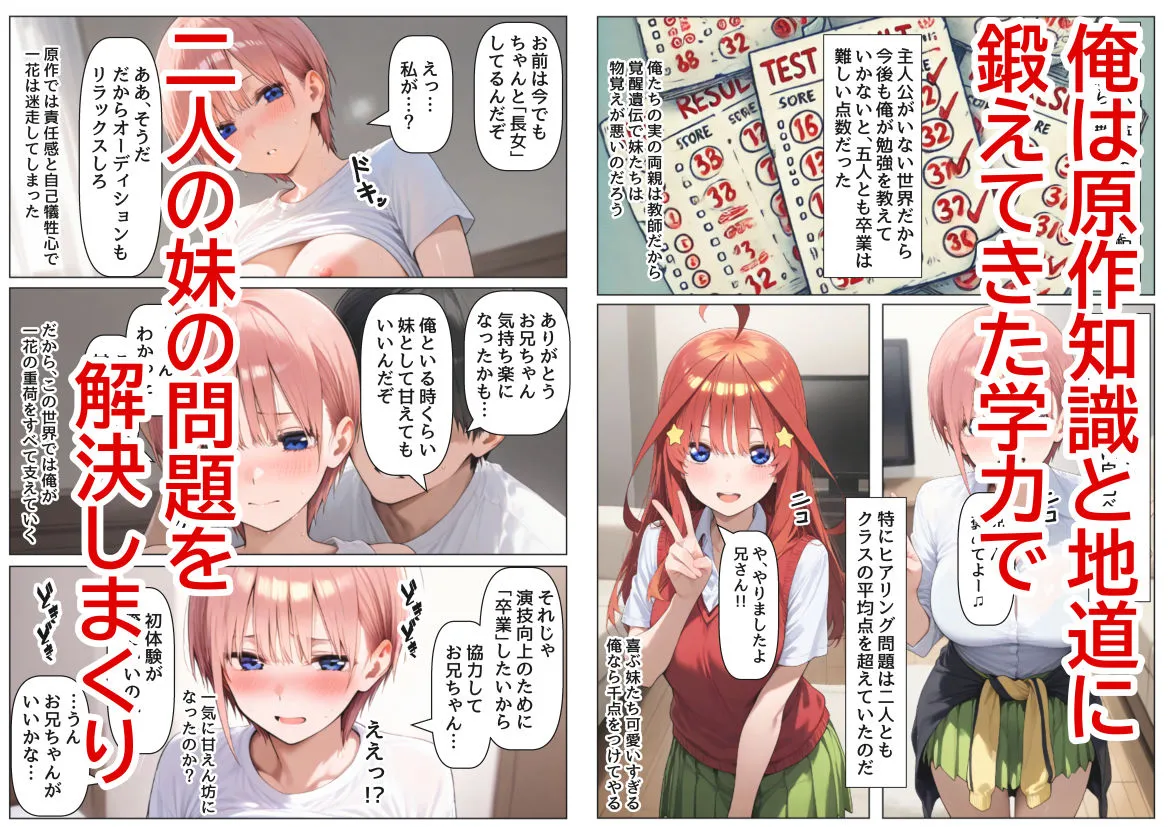 今回エッチするのは一花と五月の二人だけで、都合上原作とはストーリーイベントの順番が違うよ
