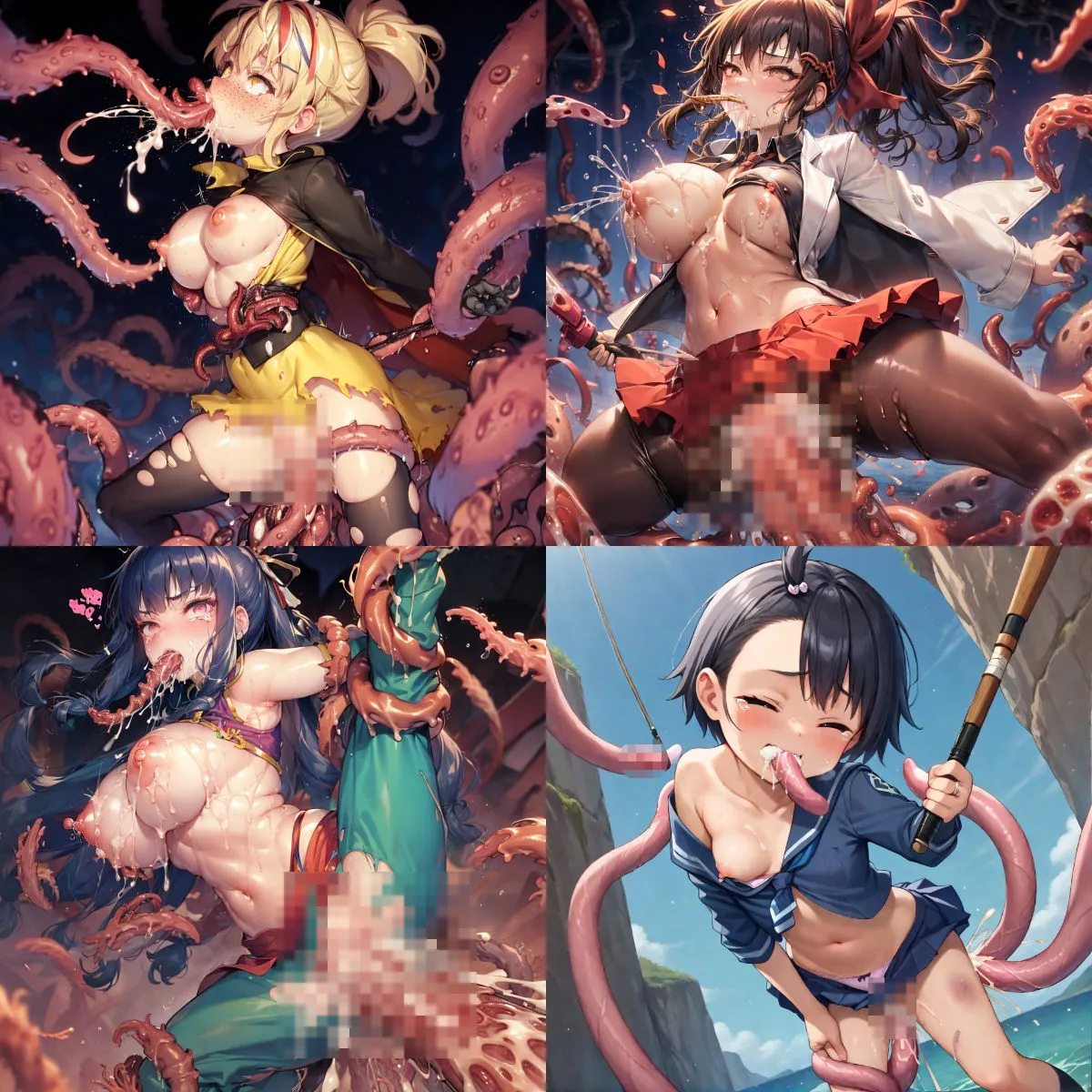 あかね2020冬春シーズンのアニメキャラが触手まみれになる触手といちゃいちゃするAI製CG集だよ