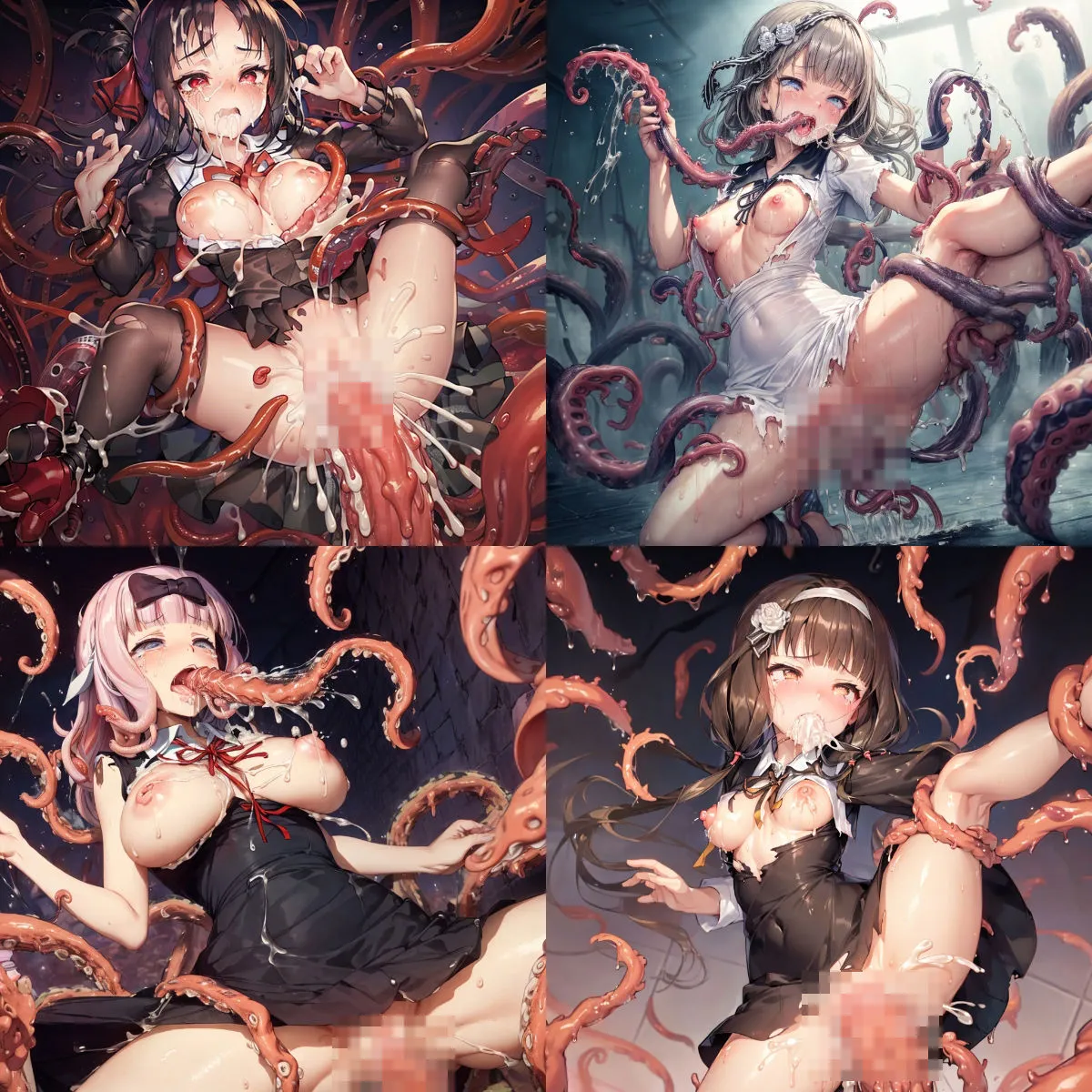 2022冬春シーズンのアニメキャラが触手まみれになる触手といちゃいちゃするAI製CG集だよ
