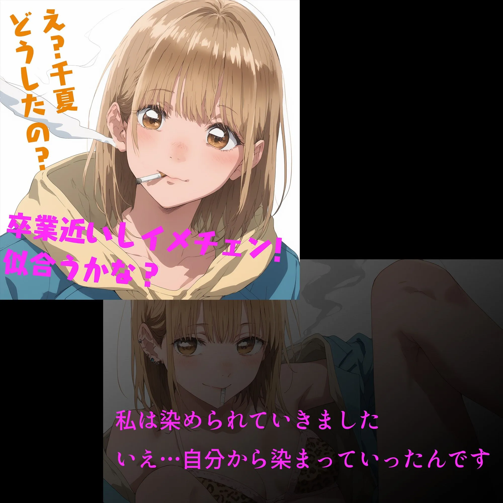収録ジャンルは喫煙、ギャル化、NTR、ビッチ化、アヘ顔でしょ