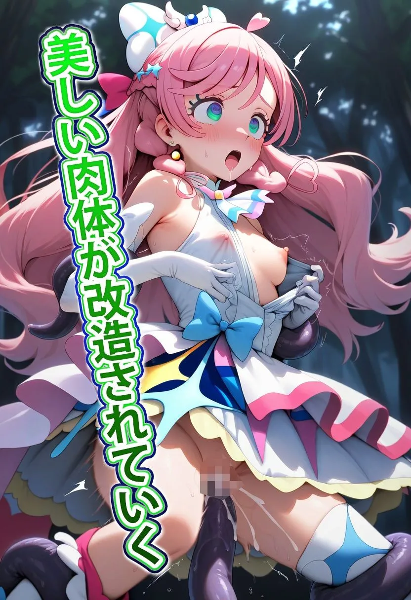 あかねこの作品は【敗北ヒロイン】500枚で、光の戦士キュ〇プリズムが闇の森に巣食う恐ろしいモンスターに完全敗北するCG集だよ