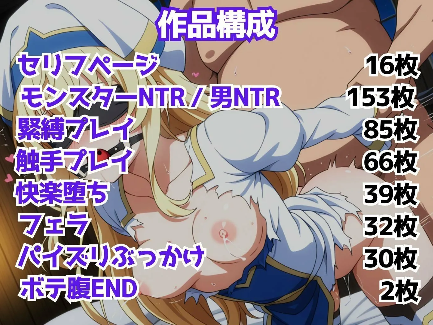「ゴブリン〇レイヤー」の「女神官」洗脳・調教CG集です。1度の敗北は聖なる祈りを快楽に染め、女神官は堕ちていく――【あらすじ】————————————女神官は突如現れたゴブリンの群れに襲われる。必死の抵抗も虚しく、ゴブリンに敗北してしまい、体を弄ばれてしまう。全てを失い、心が壊れかけたその時――彼女は冒険者たちに救われた。だが、それは真の救いではなかった。彼らの目的は、女神官を救うことではなく、己の欲望を満たすための‘玩具’として弄ぶこと。心身ともに壊れかけたセリアは、快楽と絶望の狭間で抗うが、繰り返される行為の中で次第に快感を覚えていく。やがて祈りは嗚咽に変わり、救いを乞う声は快楽を求めるものとなっていった――。————————————ゴブリンに敗北した女神官は、救いの手を差し伸べた冒険者たちの欲望に囚われる。希望と絶望が交錯するファンタジー堕落譚。全420ページのCGビジュアルストーリー。【ストーリーイメージ】敗北→モンスターNTR/人間NTR交互→監禁洗脳→触手→完堕ち→フェラ→パイズリ【作品要素】中出し、アへ顔、イラスト・CG集、イラマチオ、パイズリ猿ぐつわ、退廃・背徳・インモラル、アナル、マゾ、洗脳処女、SM、首輪・鎖・拘束具、ハード系、調教、触手、ボテ腹作品概要本作は、物語性を重視したダークファンタジーCGストーリーです。全編にわたって、キャラクターの心情変化と堕落の過程をビジュアルで描写。物語の流れをより深く感じられるよう、重要な場面にはセリフ付きシーンを配置しています。【仕様】セリフ付きシーン:全16ページ総ページ数:420ページ画像サイズ:2432×1664(横長)ファイル形式:JPG生成ツール:StableDiffusion