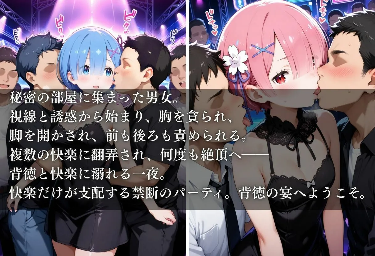 ※サンプル画像は本編より荒く、モザイクも大きくなっております。※アナルは全て無修正となります。【ストーリー】熱気に包まれた秘密の部屋で、欲望が渦巻く夜――。視線が絡み合い、肌の距離が自然に縮まる。胸元を揺らし腰をひねる美女の挑発に、理性は次第に崩れていく。指先と唇が胸に触れ、吐息が熱を帯び、脚を開かされれば舌と指が深く絡む濃厚な刺激。背後から突き上げ、前からも責められる瞬間、複数の快楽に翻弄され、何度も絶頂に達する体。夜が明ける頃、汗に濡れた体と乱れた衣装だけが残り、甘く官能的な余韻だけが静かに部屋に漂う――。背徳と快楽に溺れる、秘密の快楽パーティへようこそ。全8シーンで描かれる濃厚な夜を、ぜひお楽しみください。【登場人物】ラムレム【シーン】バーで楽しむキスおっぱいを揉まれるお尻を揉まれる手マンクンニ手コキフェラ複数フェライラマチオ乱交騎乗位正常位背面座位座位駅弁2穴責め口内射精顔射中出し潮吹きパイズリアヘ顔ハート目放心状態事後※この作品はAIを利用して作成したものです。※StableDiffusionを使用して生成しております※技術的な制約やAIの学習データによって、細部に破綻や不自然さが含まれる場合があります。購入前に、そのことを理解し、同意した上で購入を検討していただくことをお願いいたします。※購入後の取り扱いに不備があった場合こちらは一切責任を負いません。※商用目的での利用・第三者への譲渡・転載等が発見された際には法的処置をとらせていただき、損害賠償請求を致します。