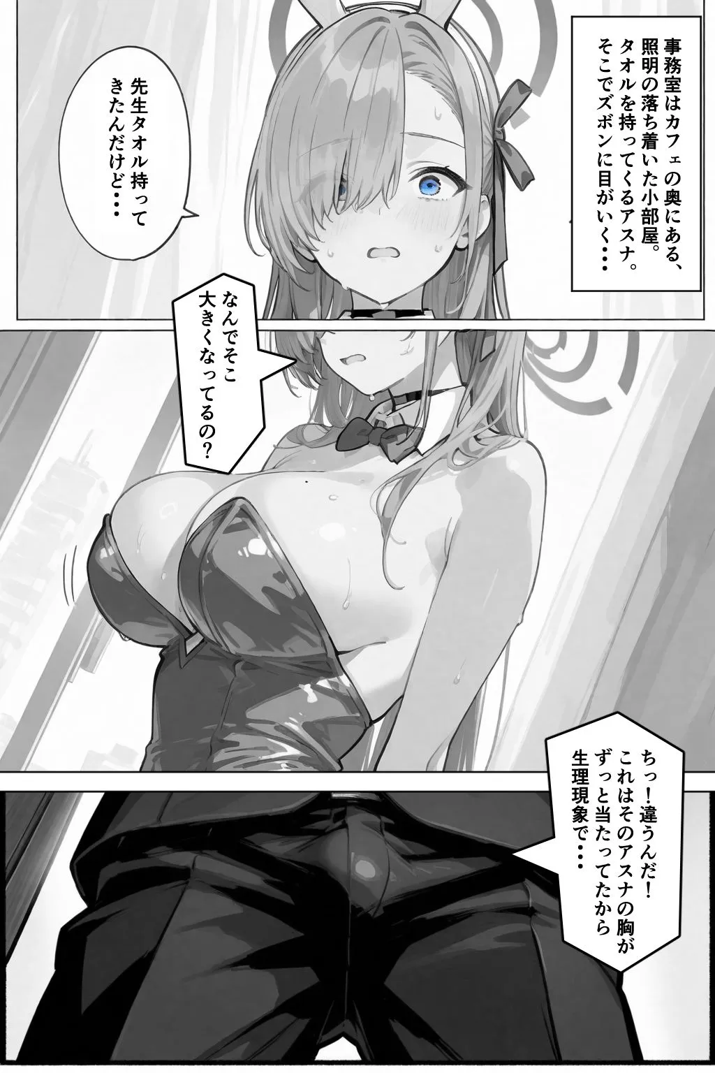 一之瀬アスナが新しく始めたアルバイト先は、ちょっと大人な雰囲気のカフェ──「Bunny’sHeaven」。そこは、可愛いバニーガールたちが接客するというちょっぴり刺激的なコンセプトのお店だった。応援のつもりで遊びに来た先生は、扉を開けた瞬間、耳としっぽをつけたアスナの姿に思わず言葉を失う。照れながらも一生懸命接客する彼女の姿に、いつもと違う一面を感じてしまう先生。だが、慣れないトレイさばきのせいで、アスナの手からジュースがこぼれ、先生のスーツにビチャリ。慌てふためくアスナは、真っ赤な顔で「すぐ拭きます!」と裏の事務室へ案内する。二人きりの静かな空間。濡れた服、近づく距離、揺れる耳。その夜、「Bunny’sHeaven」で起こった出来事は、アスナと先生の関係を少しだけ変えてしまう――。【収録内容】本編19ページ(グレースケール)jpg版+PDF版同梱【SNS】制作中の漫画・進捗情報・次回作の予告は以下で発信中!X:@ai_wanna_