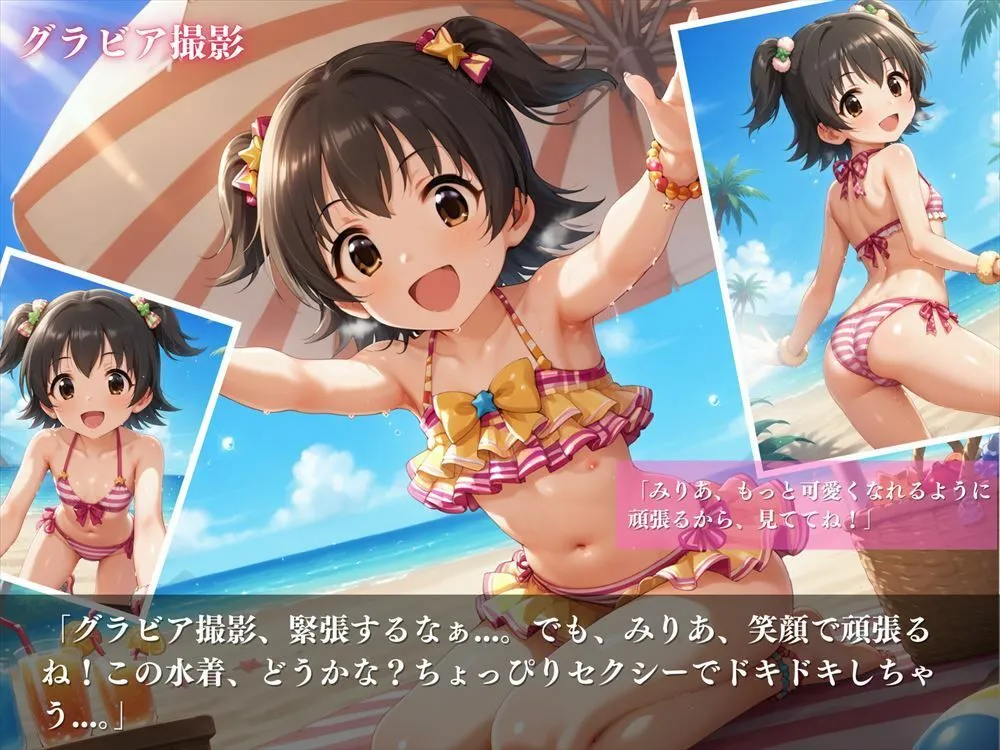 グラビア撮影の水着は『グラビア撮影緊張するなぁ。でもみりあ頑張る!この水着ちょっとセクシーかもあなただけに見せちゃうね』なのよ