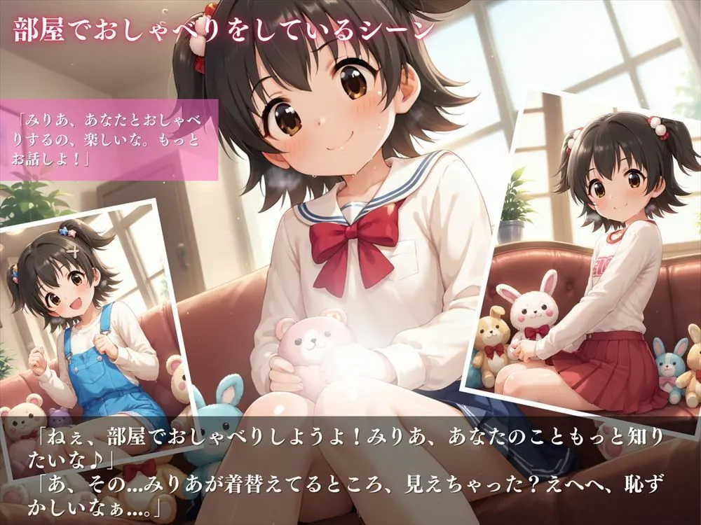 部屋でおしゃべりシーンは『ねぇ部屋でおしゃべりしようよ!みりあもっとあなたのこと知りたいな。あもしかして着替えてるところ見ちゃった?』だね