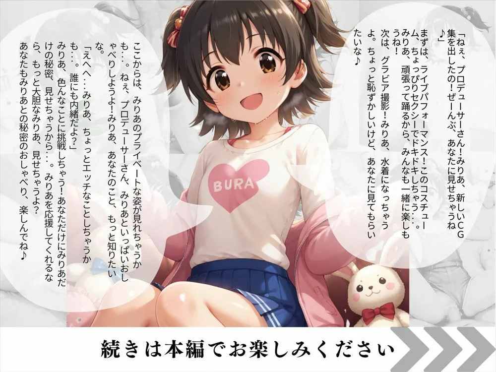 中出しはイラストの断面図付きで『みりあの中に?えっ本当にいいの?みりあ頑張るから』クンニは『みりあ気持ちよくなっちゃう。あなたの舌がすごくてもっと舐めてほしいな』なのよ