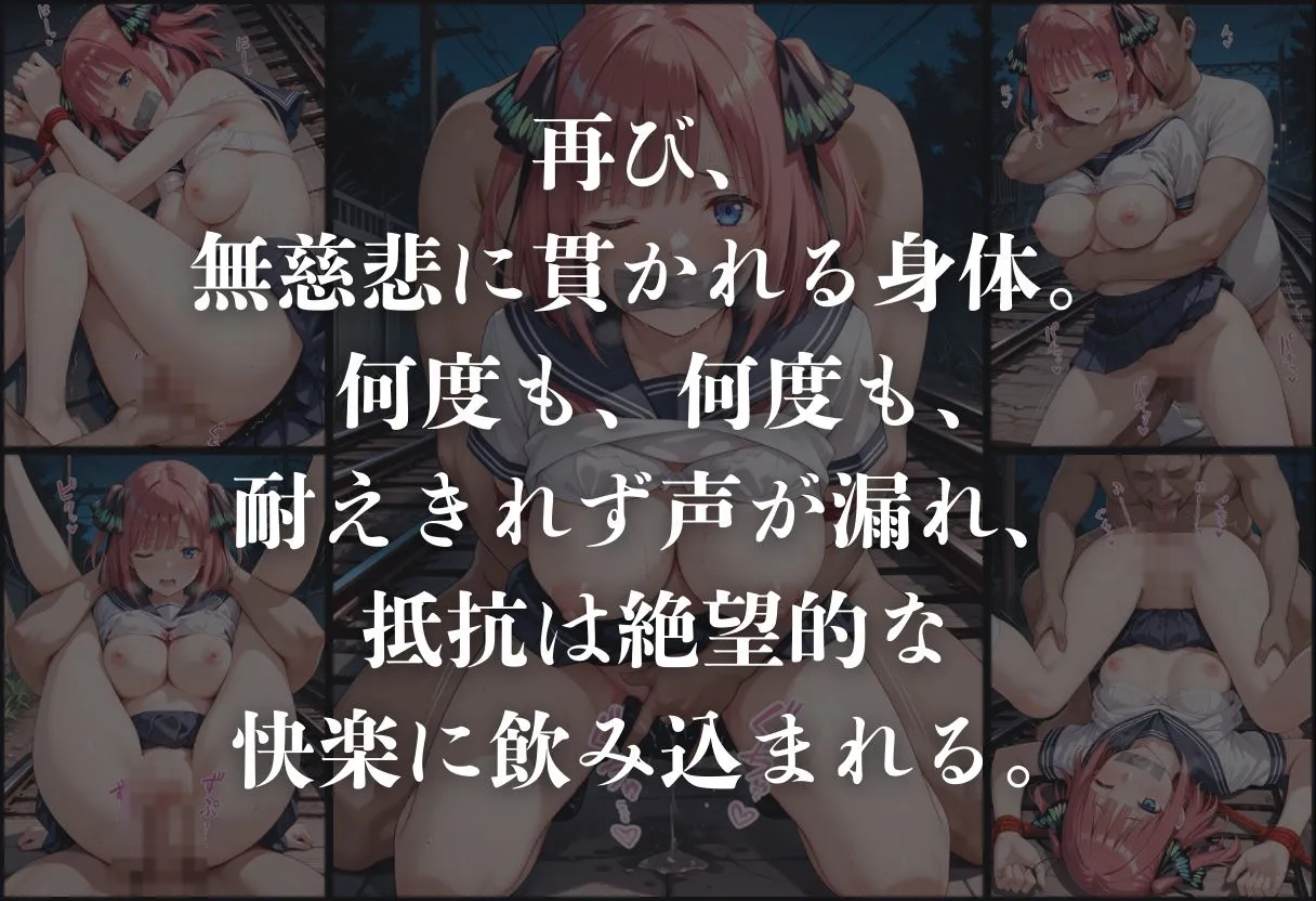 あかねこの作品は五等分の花嫁〜中野二乃〜のCG集で、最終電車を舞台にした痴漢電車レイプものだよ