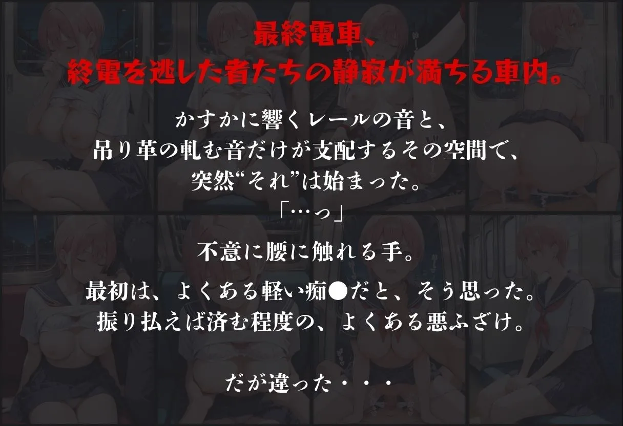 電車内シーンは主人公電車乗る、居眠り、おっぱいに触れる、陰部おしつけ、陰部触らせ、痴●、お尻にぶっかけ、イラマチオ、フェラ、性行為、事後泣きなんだけど