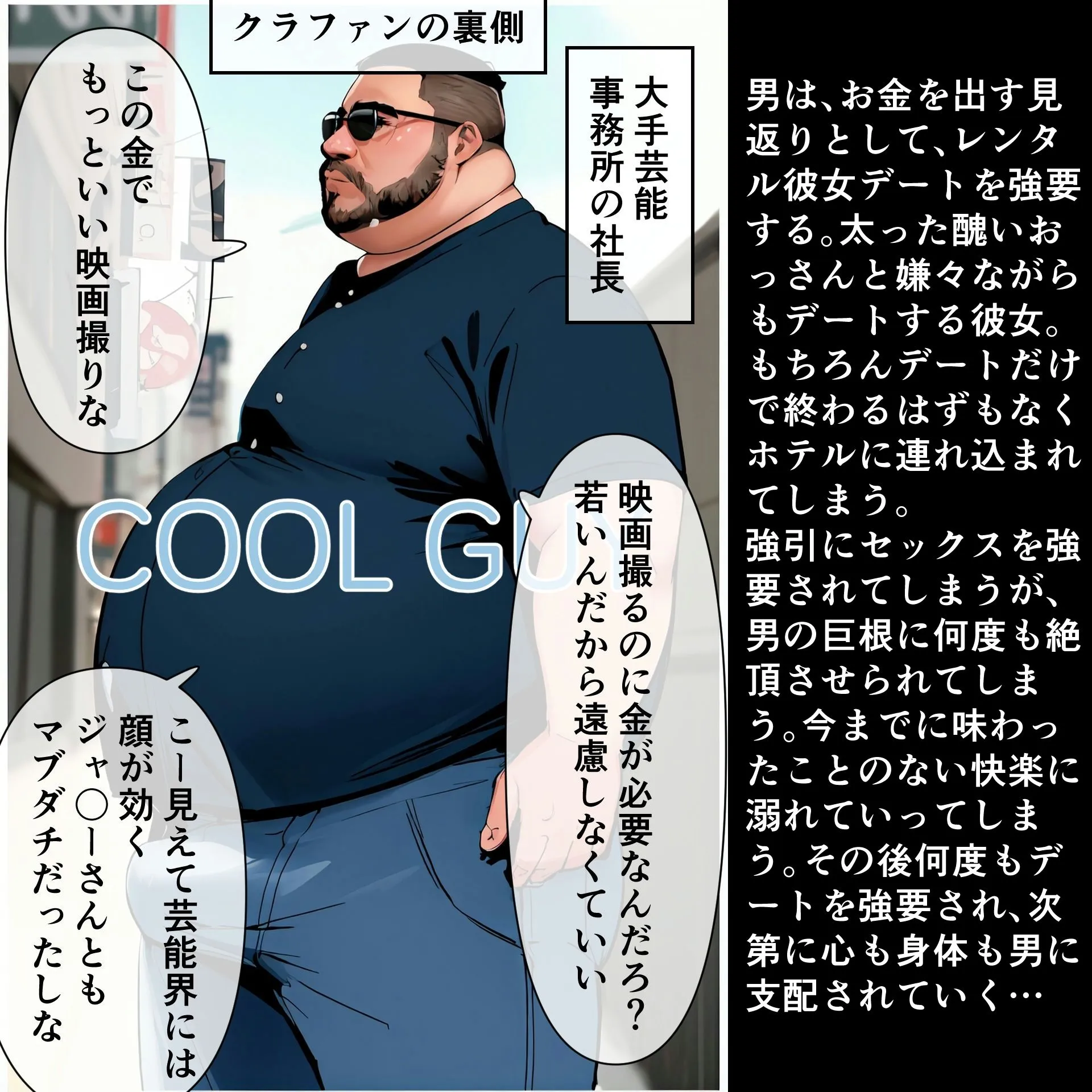 太った醜いおっさんと嫌々ながらもデートする彼女なんだけど。もちろんデートだけで終わるはずもなくホテルに連れ込まれてしまうわ