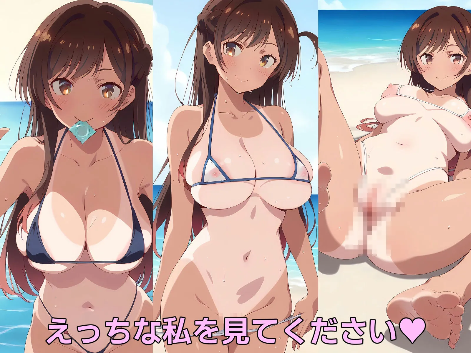 日焼け跡残る健康的な身体にエッチなマイクロビキニ、水にぐっしょり濡れてスケスケになった制服で、ち〇るちゃんに沢山誘惑されるよね