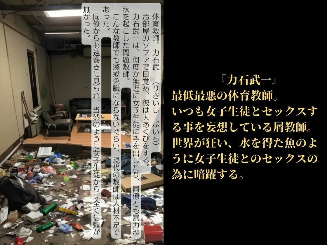コンセプトはどんなセックスでも黙認される世界で、ヤリたい放題の汚じさんと不良生徒がヒロインを嬲るのよ