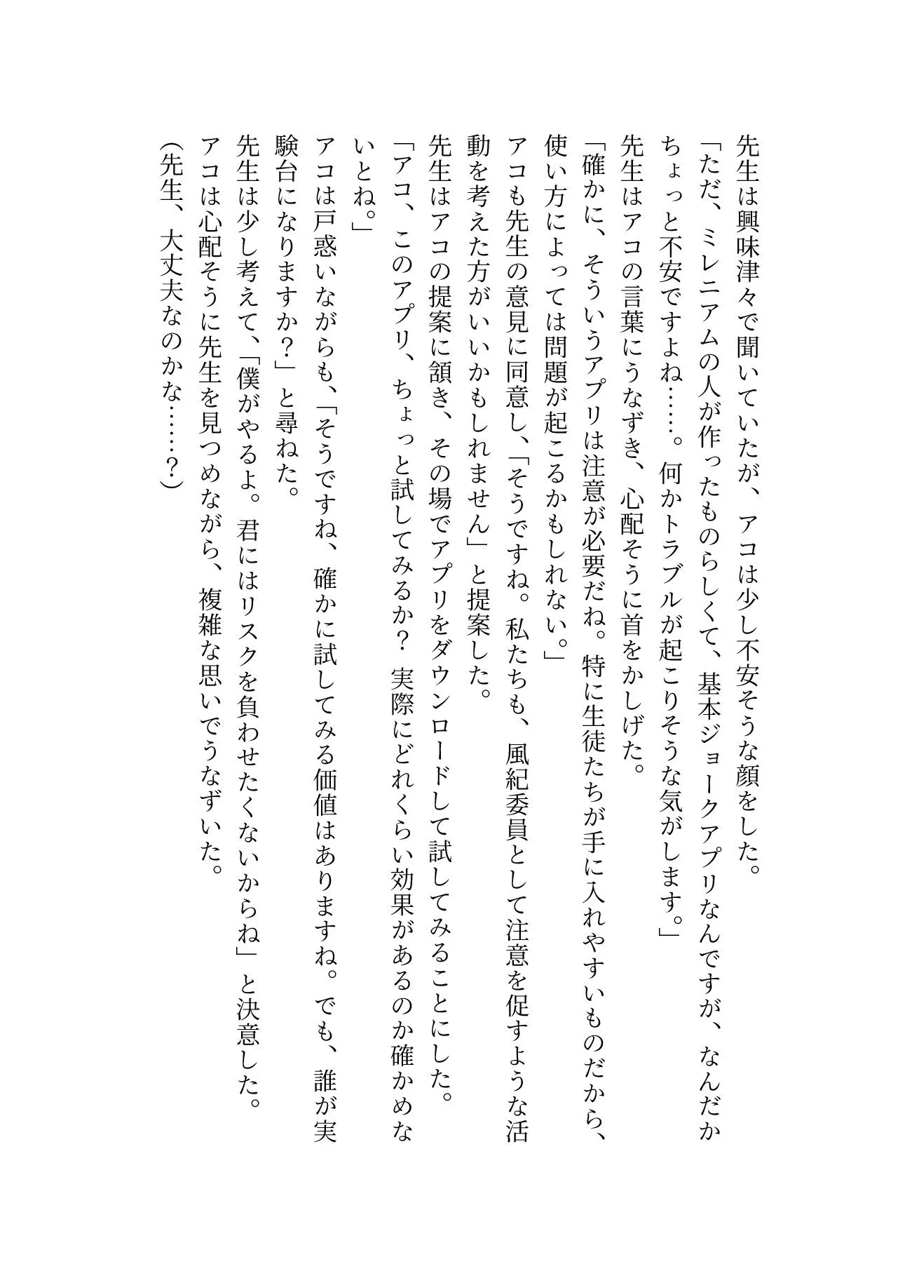 アコと先生は、このアプリの効果を確かめるために、先生が実験台になることにするんだ
