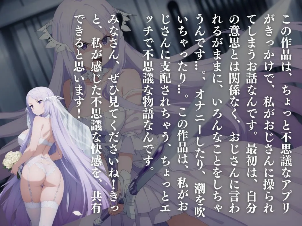 ある日、彼女の前に現れた謎のおじさんが『謎のアプリ』を差し出して、心と体を徐々に支配していく話なのよ