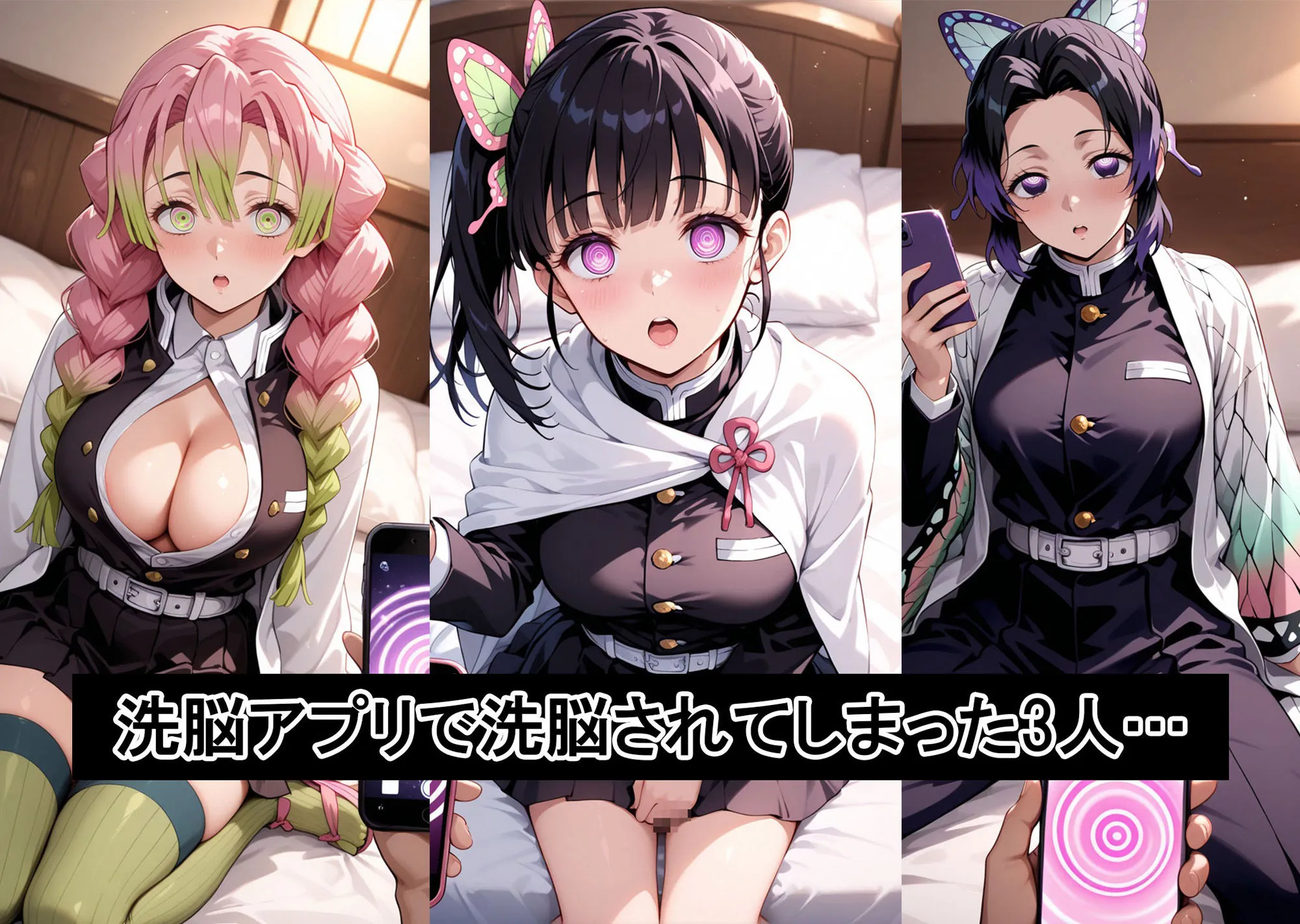 ある日、男から洗脳アプリにより洗脳されてしまう…わけもわからないまま男の言いなりになってしまい自ら胸をあらわにし男を受け入れていく3人【収録内容】500枚甘露寺蜜璃隊服83枚甘露寺蜜璃ヌード83枚栗花落カナヲ隊服83枚栗花落カナヲヌード83枚胡蝶しのぶ隊服83枚胡蝶しのぶヌード83枚それぞれフォルダ分けをしておりますのでお好きなキャラをご堪能できます全て冒頭→前戯→行為→事後の流れとなっております※この作品はAIを使用して作成しております。
