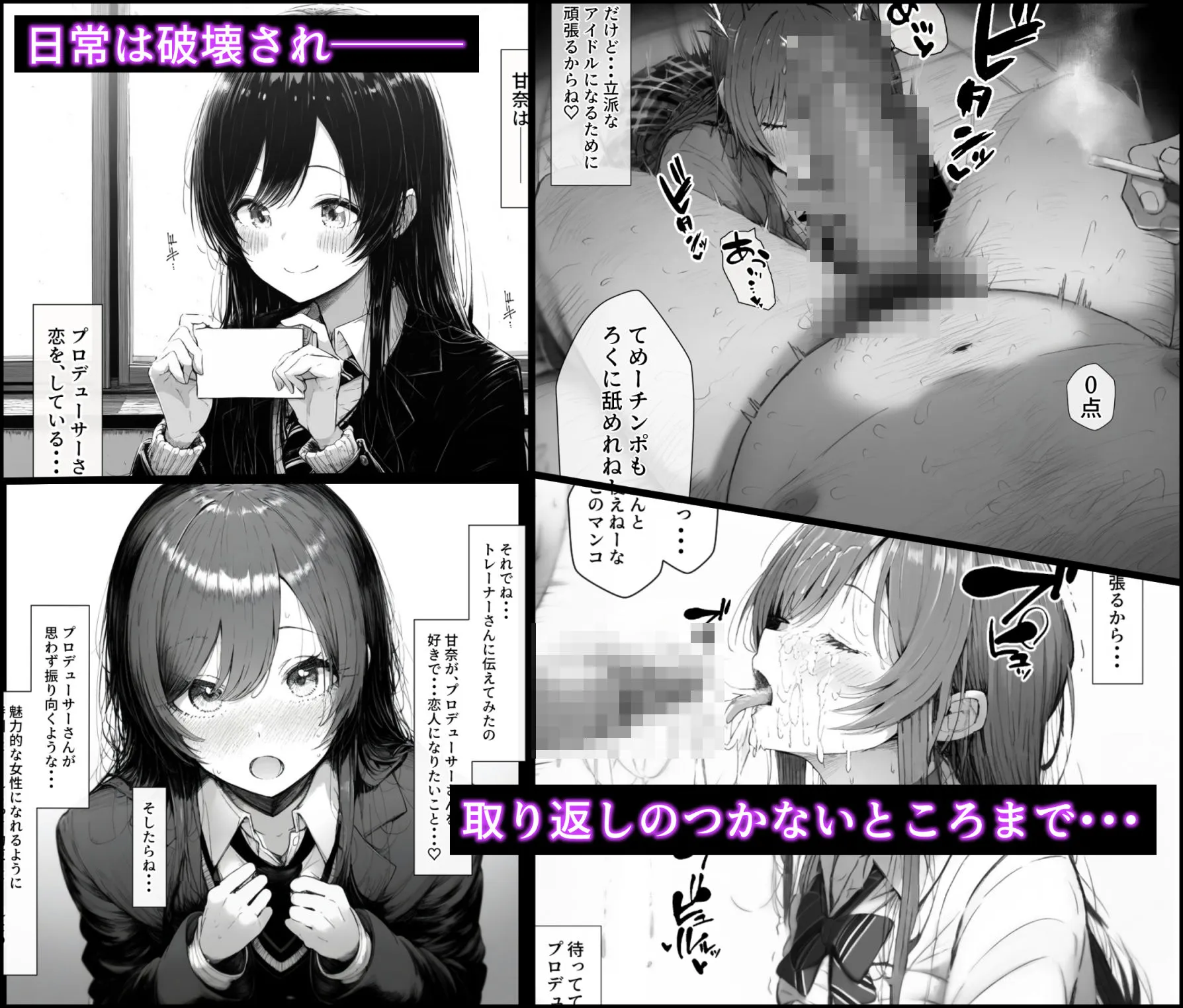 画面上の憧れのアイドルたちが所属する事務所を催●で制圧、洗脳していくストーリーだね