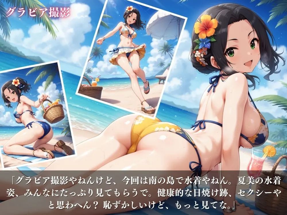 グラビア撮影は南の島での水着姿が必見で、健康的な肌とボディラインをじっくり鑑賞できるわ