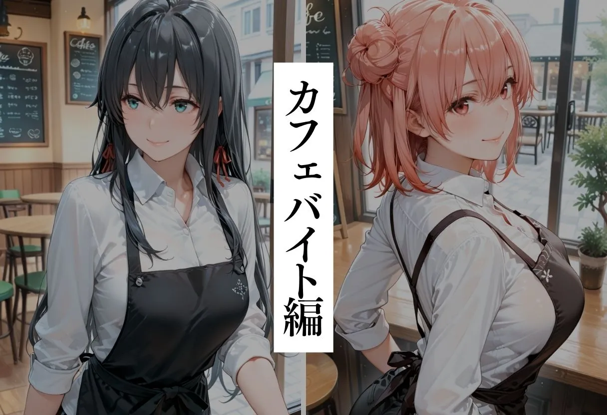 ヒロイン1のカフェバイトシーンは接客からお尻をさわられるのよ