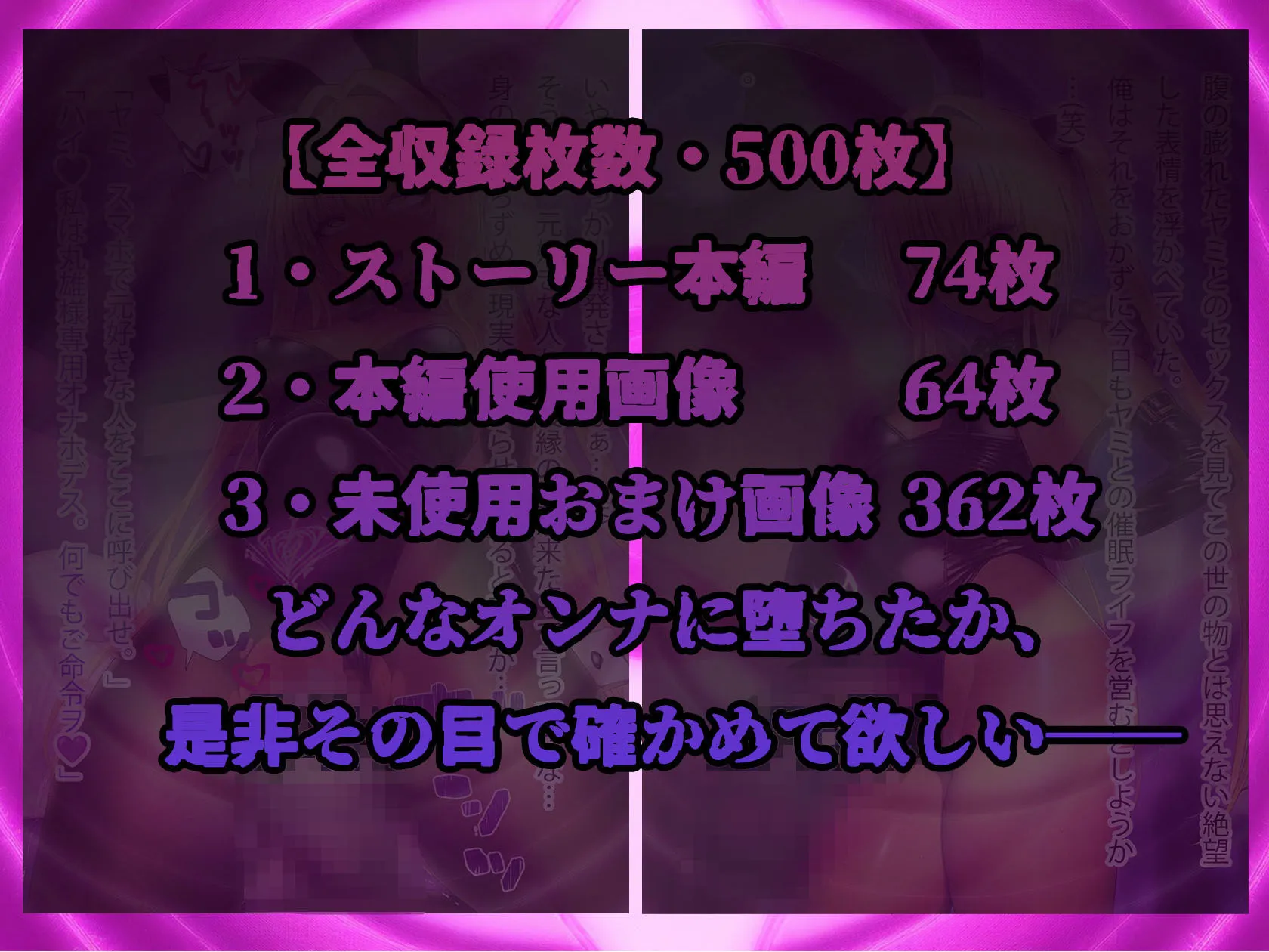 【全収録枚数・500枚】1・ストーリー本編74枚2・本編使用画像64枚3・未使用おまけ画像362枚よ