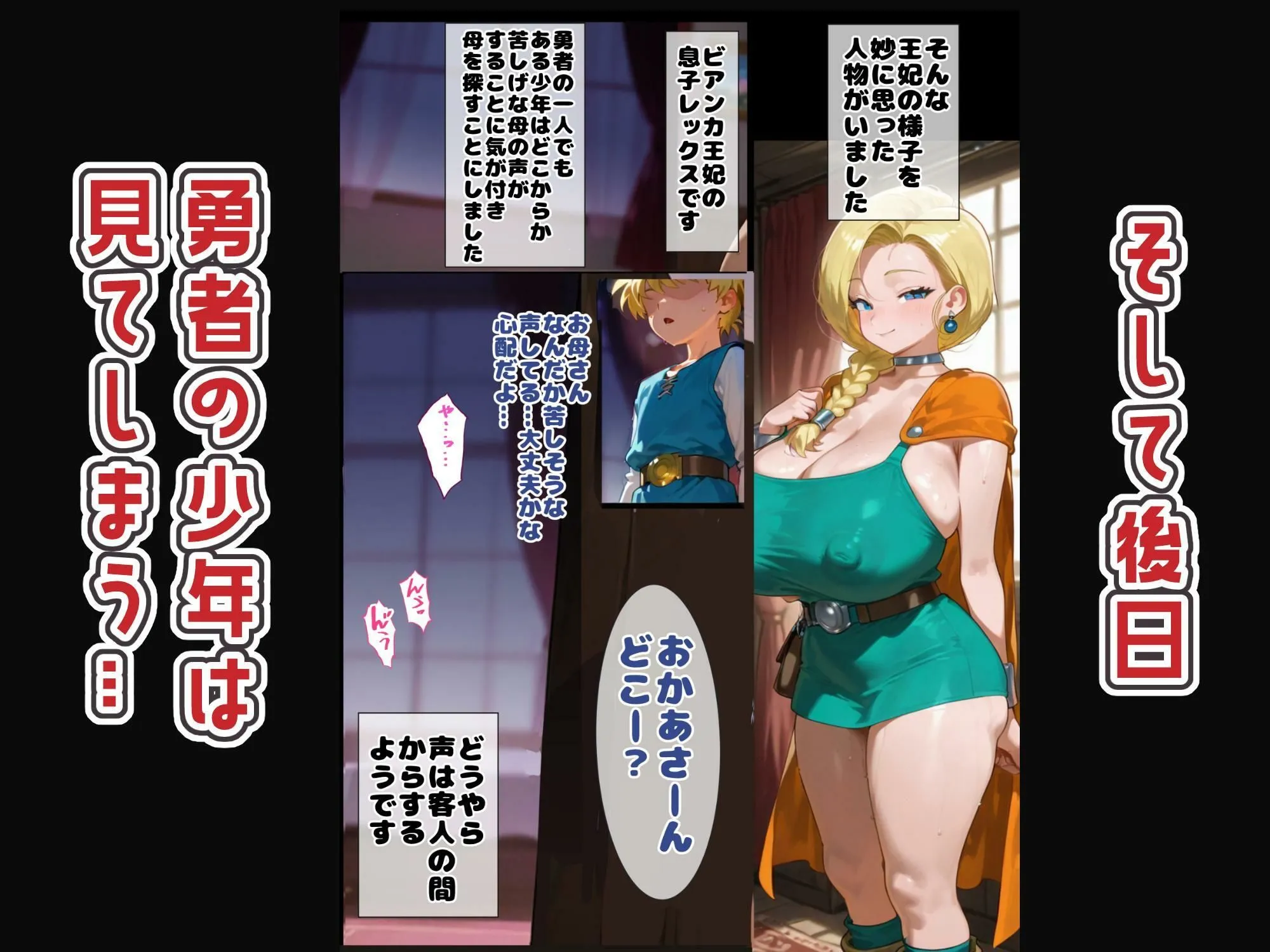 勇者の少年視点、母ビアンカ寝取られ編は魔道士がやってきてしばらく経った頃、母ビアンカの様子がおかしいと気づいた勇者の少年が母を探すんだよ