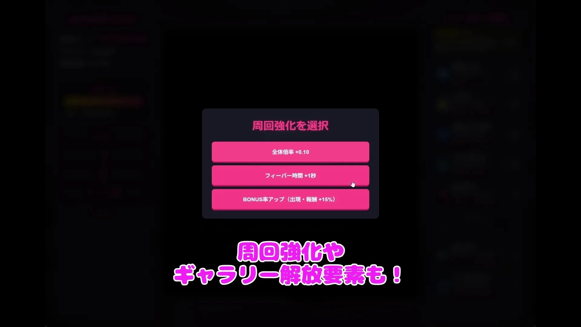 一定まで進めると次の段階へ進行できて、さらにゲームを進めることで周回による強化要素も解放されるんだ