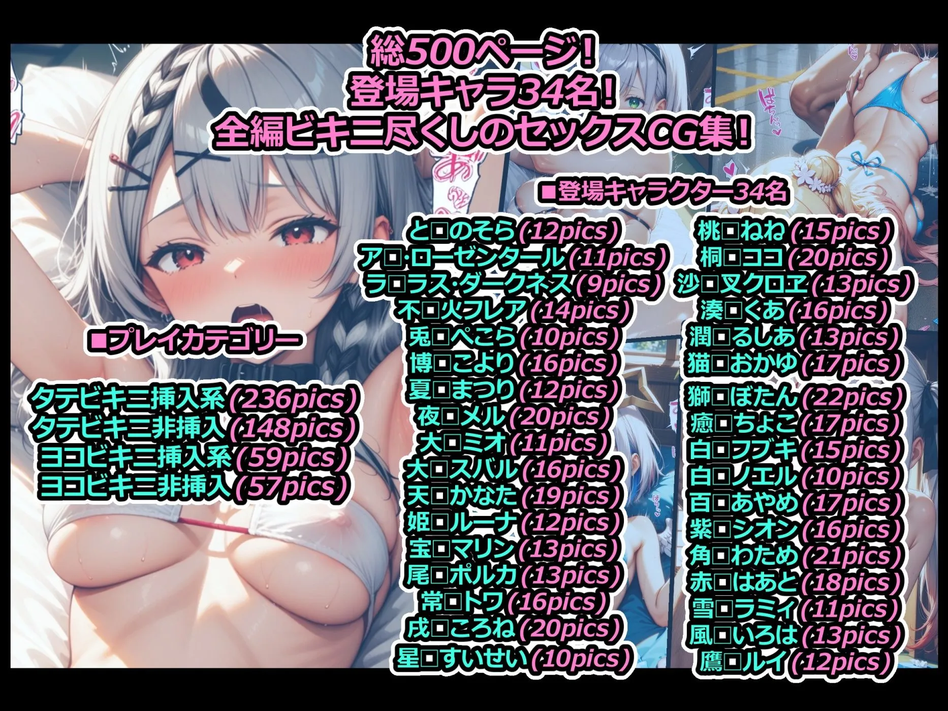 兎□ぺこら(10pics)、博□こより(16pics)、夏□まつり(12pics)、夜□メル(20pics)も収録だよ