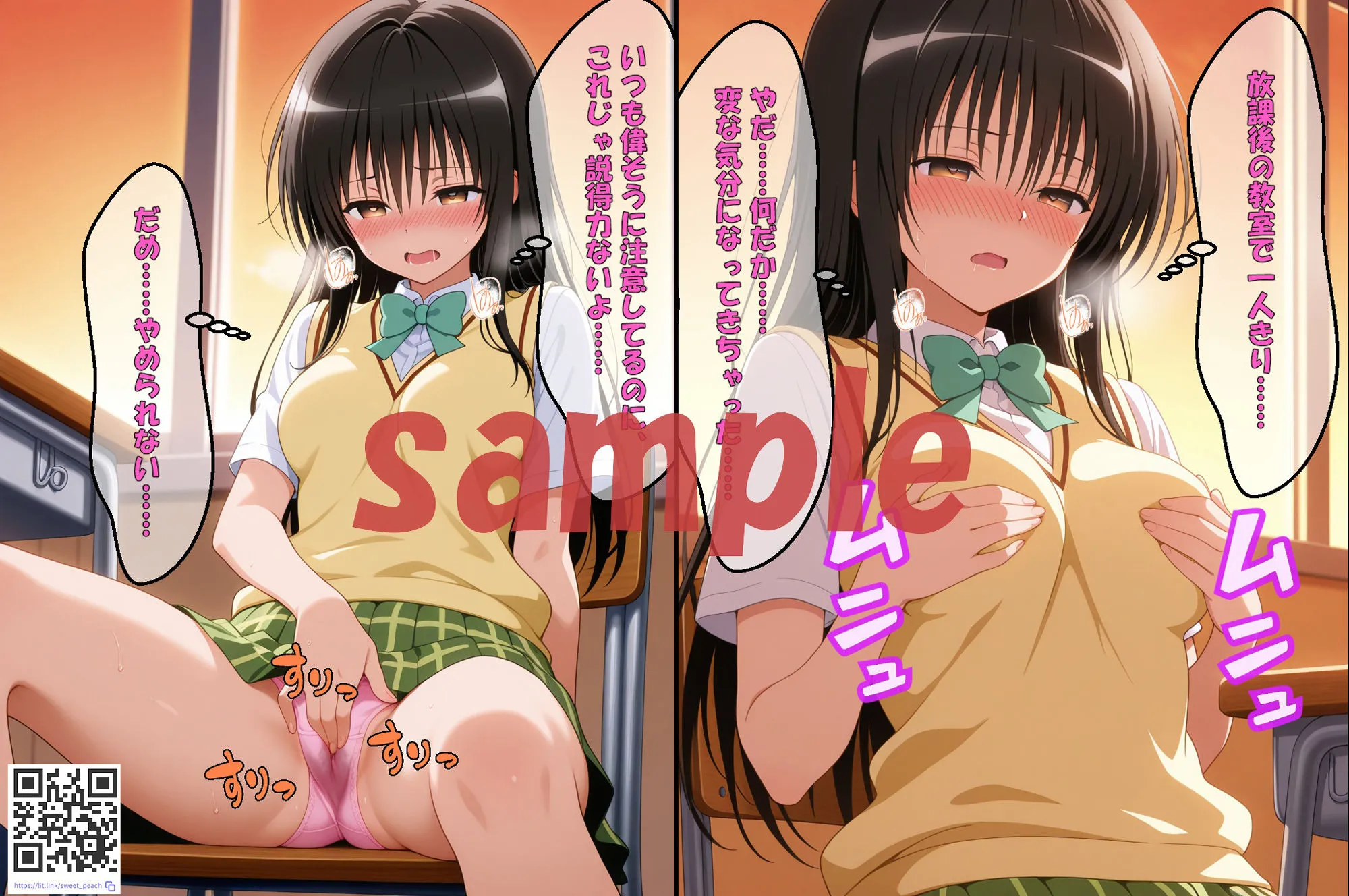 ◆作品のページ数・ファイル形式◆合計95ページjpgファイル(セリフあり)95個pdfファイル1個(内訳)▽本編50ページ▽おまけ44ページ▽本タイトル1ページ※おまけについておまけには、制作過程で本編には採用されなかったものの、魅力的な仕上がりだった画像を厳選し、本編のセリフを加えて再編集した特別版を収録しています。◆イメージ内容◆真面目で清楚、そして誰よりも厳しい風紀委員――古〇川唯。彼女は日々、校内の秩序を守るために自らを律していた。だが、そんな彼女の心の奥には、誰にも見せたことのない‘もう一つの顔’があった。ある放課後、彼女の心を見透かしたように現れた男。「風紀委員なのに……そんな妄想をしているのか?」その言葉がきっかけとなり、唯の世界は静かに崩れ始める。抗おうとすればするほど、理性の糸はほどけていく。やがて彼女は、拘束という名の檻の中で――知らなかった感覚と、快楽の意味を思い知らされていく。そして舞台は温泉へ。湯けむりの向こうに待っていたのは、再びあの男だった……。清楚な風紀委員が、理性と欲望の狭間で揺れ動く――◆イラストを見られた方への感謝◆この度は本書を手にとっていただき、誠にありがとうございます!ま〇かのエロシーンが、あなたの夜をより特別で官能的なひとときに彩るお手伝いができれば幸いです。ピクシブなどで作品を投稿しています。もしよろしければ見てください。【紹介文】イラストは合計95ページ、1024×1360の大きさでAIで生成しています。生成した約1000枚の画像の中で最も良いと思う95枚を厳選しています。その厳選した画像に魂を込めて、セリフや擬音を加え、画像の手直しやエロ素材の追加などをしています。今回の作品は、美少女ヒロインが快楽を味わう作品です。恥じらう美少女ヒロインを堪能していただければありがたいです。今後ともエレガントビジョン出版・スイートピーチをよろしくお願いいたします。◆↓↓↓過去の作品はこちらからもご覧いただけます。↓↓↓◆
