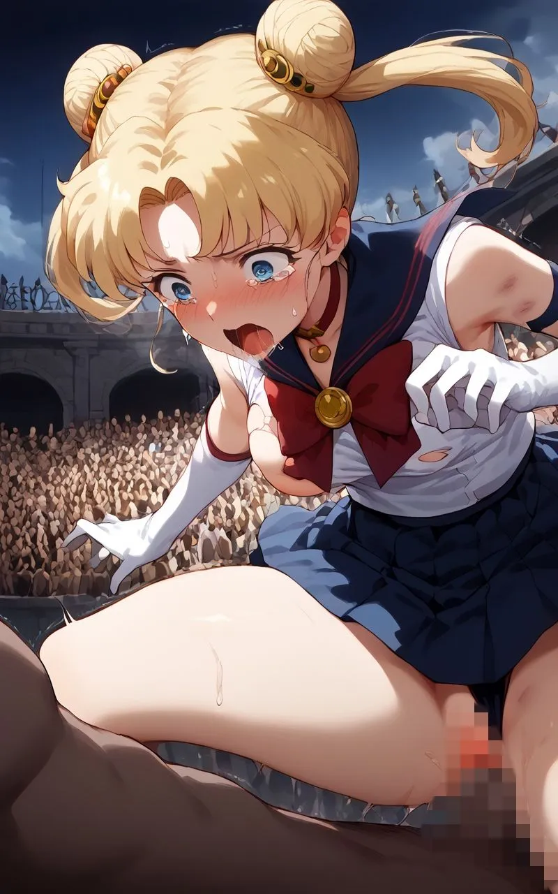 あかねこの作品は負けたら即レ●プされるコロシアムで、セーラームーンこと月野うさぎが大男と対戦するCG集だよ