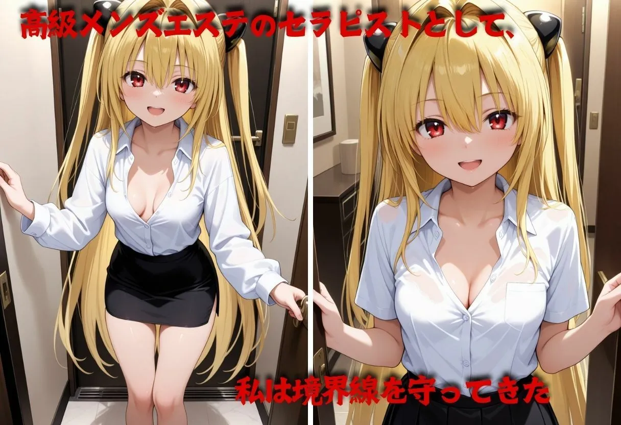 ※サンプル画像は本編より荒く、モザイクも大きくなっております。※アナルは本編無修正となります。【キャラクター】ToLOVEる金色の闇【ストーリー】高級メンズエステのセラピストとして、私は境界線を守ってきた。「当店はマッサージのみですので――」それが、私とお客様の約束。けれど、今日の彼は違った。視線が合うたび、胸の奥がざわめく。オイルを塗る指先が、わずかに震える。熱を帯びた空気に包まれ、私の理性はほどけていく。気づけば…私は、自らその禁断の一線を越えていた。快楽と背徳が絡み合う、甘く危険な施術の夜――。【シーン】・出迎え・マッサージ・お触り・乳揉み・イラマチオ・口内射精・バック・中出し・騎乗位・バック・正常位・種付けプレス・顔射・片足上げ挿入・事後etc※この作品はAIを利用して作成したものです。※StableDiffusionを使用して生成しております※AIで生成された画像は、実在の人物・キャラクターに類似している場合がありますが、それは偶然の一致であり、一切関係がありません。※技術的な制約やAIの学習データによって、細部に破綻や不自然さが含まれる場合があります。購入前に、そのことを理解し、同意した上で購入を検討していただくことをお願いいたします。※商品は予告なく販売を中止することがあります。予めご了承ください。※購入後の取り扱いに不備があった場合こちらは一切責任を負いません。※商用目的での利用・第三者への譲渡・転載等が発見された際には法的処置をとらせていただき、損害賠償請求を致します。※被写体は全て成人しておりコスチュームプレイの衣装です。