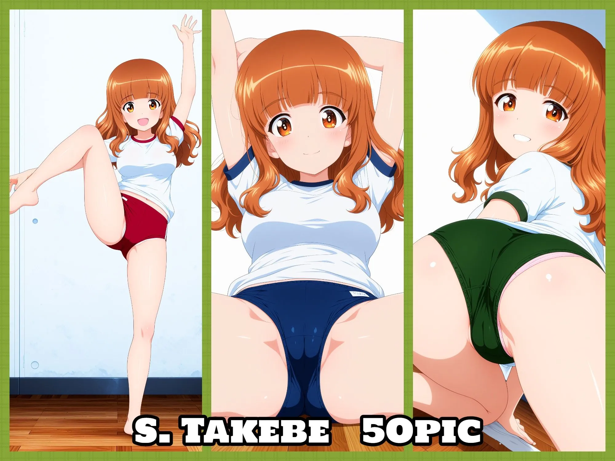 健康的な被写体の魅力を引き出すポージングとそれを包み込むブルマがメインでしょ。ときどきはみパンも入ってるのよ
