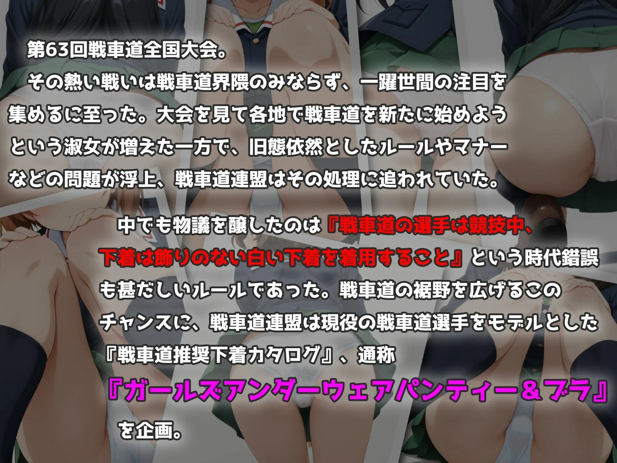 戦車道連盟は『戦車道推奨下着カタログ』、通称『ガールズアンダーウェアパンティー&ブラ』を企画して、下着メーカーからスポンサーも取ったんだ