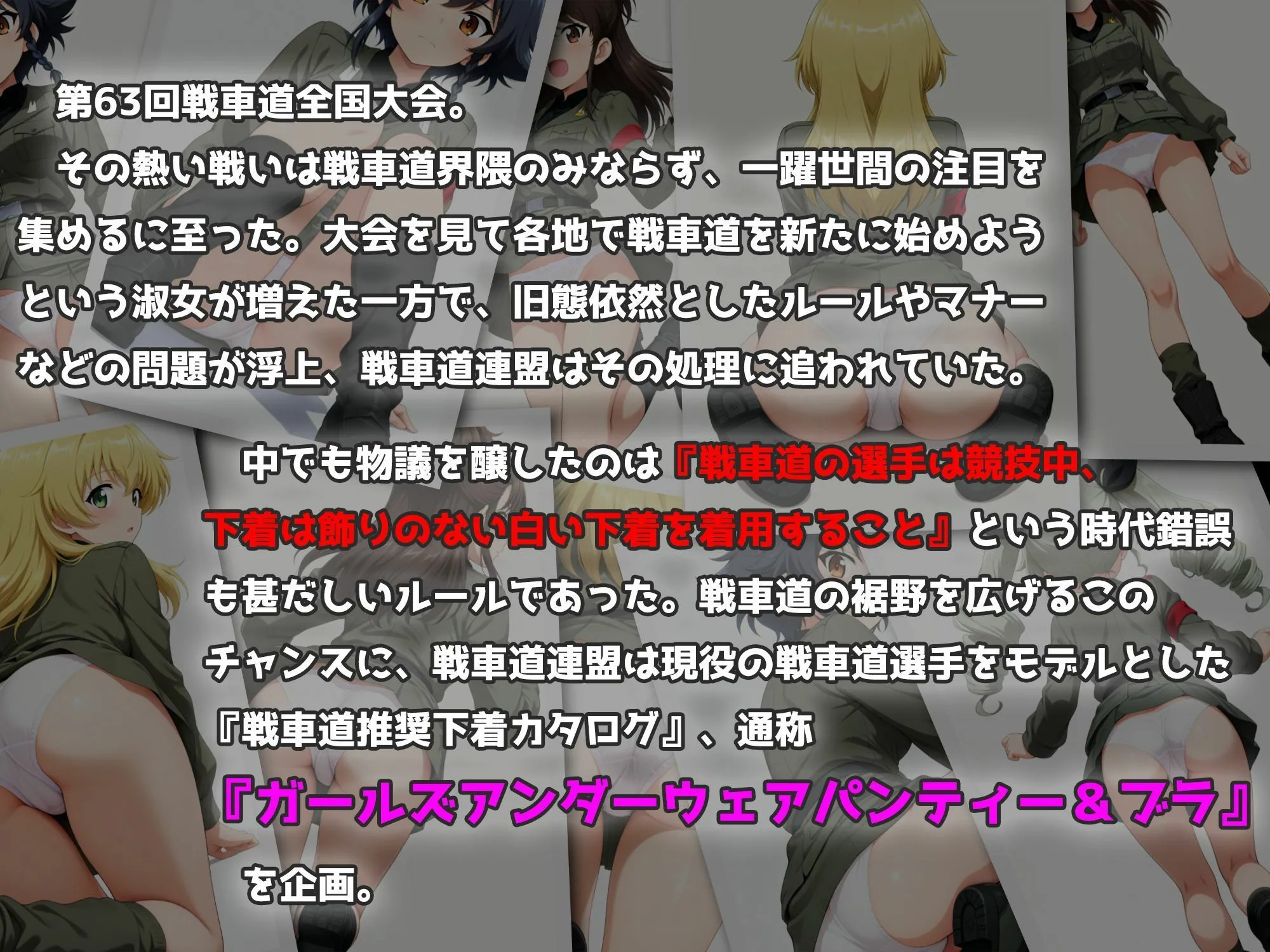 そこで裾野を広げるチャンスに、戦車道推奨下着カタログ、通称ガールズアンダーウェアパンティー&ブラを企画したよ。下着メーカーからスポンサーも