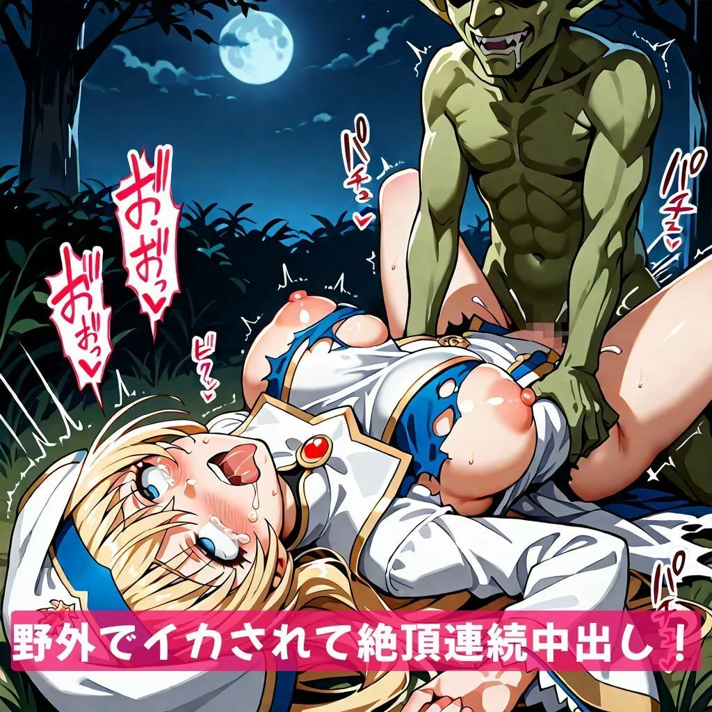 ゴブ●ンスレイヤーパロディシリーズの二次創作だよ。女神官、妖精弓手、剣の乙女のゴブスレヒロインたちがゴブリン姦でイっちゃうんだ