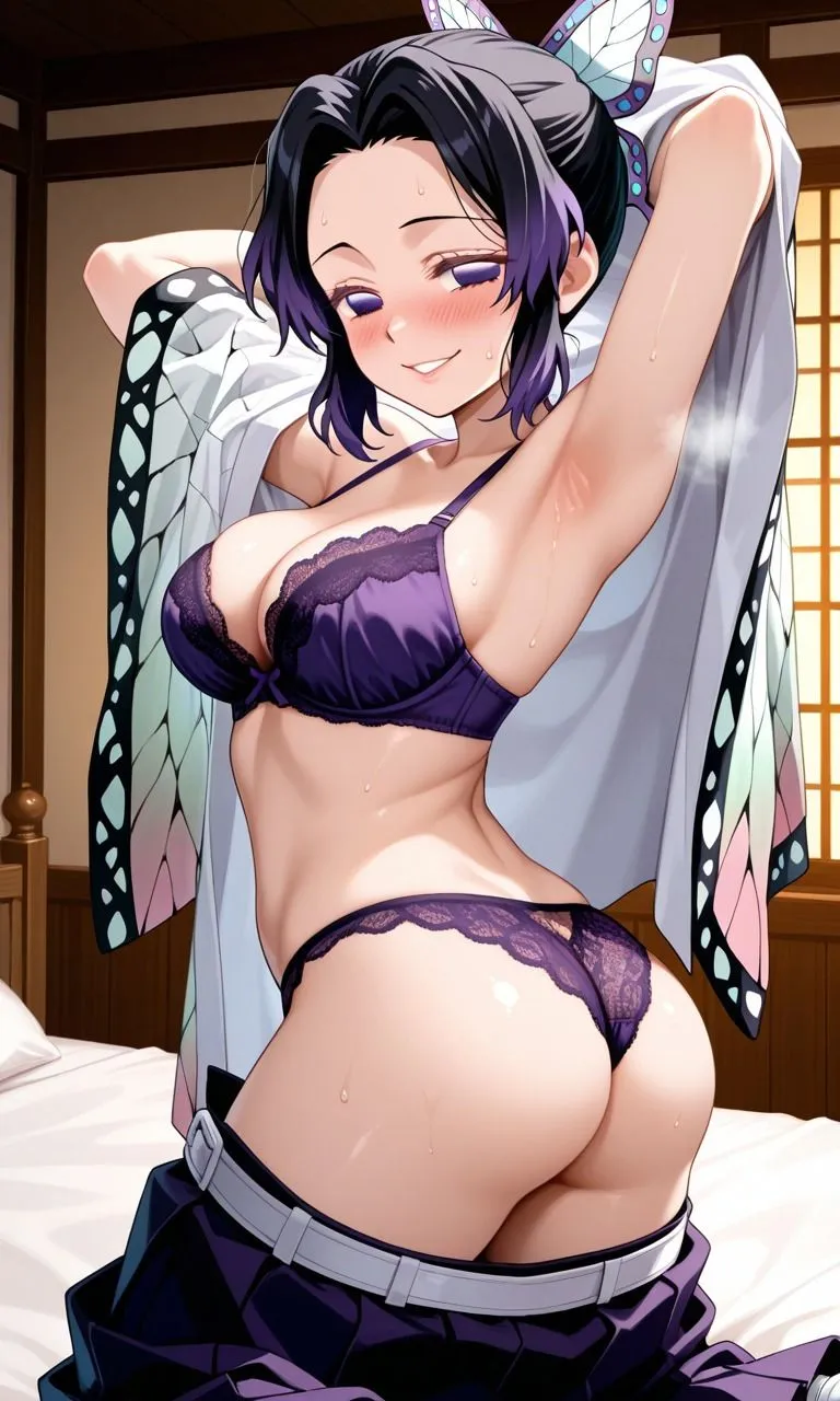 胡蝶しのぶはドS手コキフェラ、搾精パイズリ、脇見せ挑発ポーズ、ベロチューディープキスで甘イキ、脇見せ騎乗位で中ハメセックス。おまけは女医の姿で挑発パンチラ、ガーターベルトストッキングで足コキ射精、ドSな顔で顔面騎乗位→背面騎乗位で搾精中出しセックスだよ