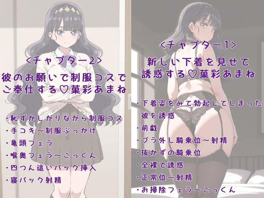 シチュエーション1は新しく買った下着を彼に見せたら彼のあそこが勃起してしまい…で、下着姿騎乗位、全裸誘惑、正常位、お掃除フェラが115枚なんだ