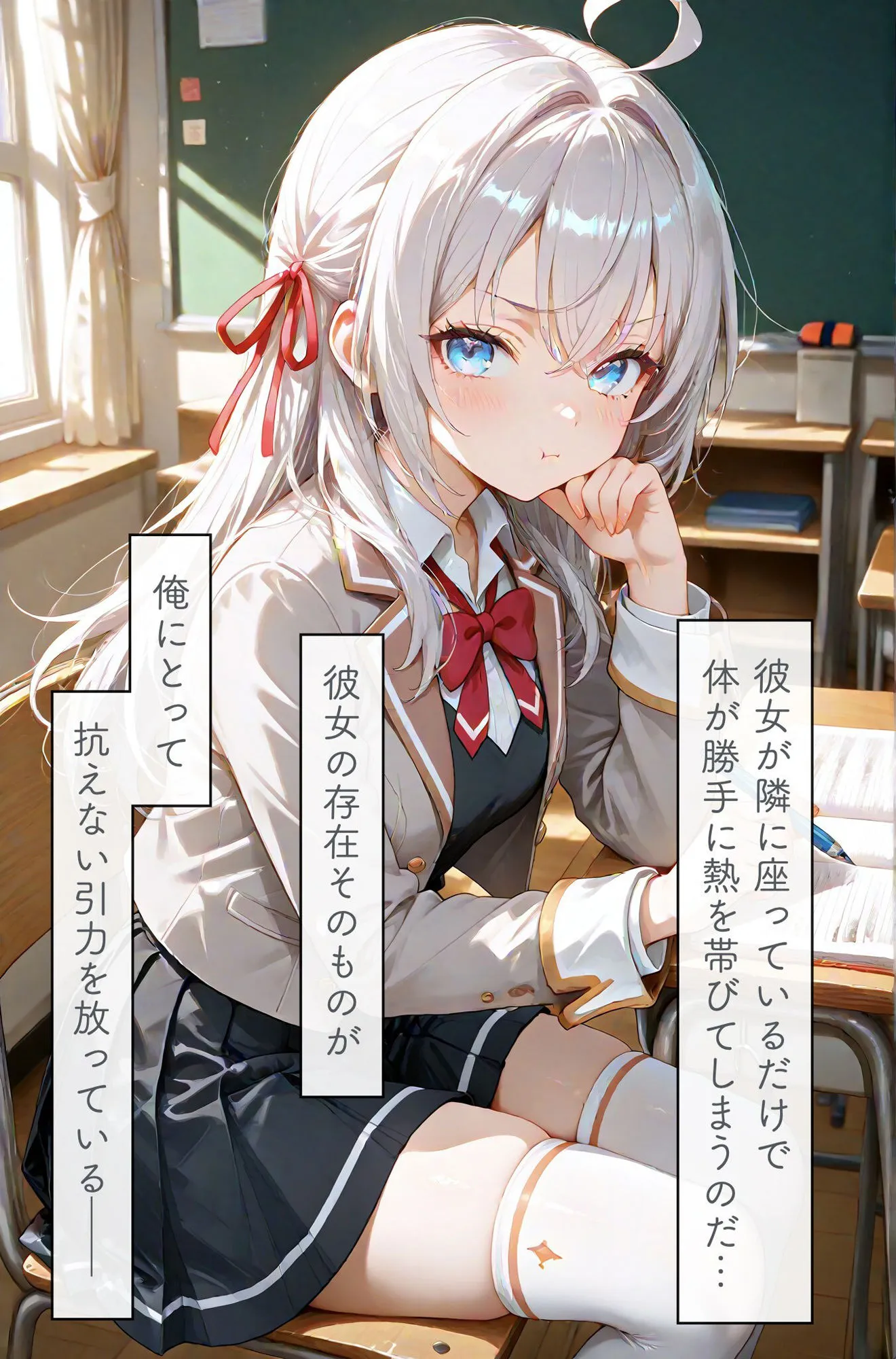 隣の席の銀髪の美少女と主人公のドキドキするような親密な瞬間を、鮮やかで官能的なCGで描いたエロアニメCG集です。教室や屋上での何気ない日常が、熱を帯びた刺激的な展開へと変わる様子を、心ゆくまでお楽しみいただけます。210枚(導入22枚、表紙等含む)にわたり丁寧に収録。パンチラ、手コキ、フェラチオから背徳的な、ぶっかけシーンまで、盛りだくさんの一冊です。◯JPEGファイル全210枚(導入22ページ、表紙等含む)本作品は、ほとんどのページにセリフや効果音テキストを配置。視覚と文章が一体となった、臨場感ある作品に仕上げています。※テキストが目障りに感じる方はご購入をお控えください。ご購入前にご確認ください本作品は既存アニメ作品に登場するキャラクターにインスピレーションを受けた、二次創作アダルトCG集です。◯原作との直接的な関係はなく、オリジナル要素を多く含むIF世界・ファンタジー作品としてお楽しみください。◯キャラクターデザインは原作の完全再現ではなく、独自の解釈やアレンジを加えています。◯全編AI生成による作品のため、指先や小物など細部に描写の甘い部分や違和感が見られる場合があります。◯制服や小物、背景にはオリジナルの創作的アレンジを含みます。◯本作には「ぶっかけ」「アヘ顔」などの過激な性表現を含みます。苦手な方はご購入をお控えください。◯制服姿・若々しい容姿のキャラクターが登場しますが、登場人物はすべて成人(18歳以上)として描写しています。◯本作品は購入者ご本人のみの鑑賞を前提としています。他者への閲覧提供、再配布、SNS等へのアップロードはご遠慮ください。◎ご購入・閲覧いただくことで、上記内容にご同意いただいたものとさせていただきます。