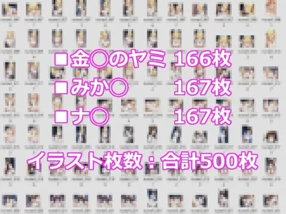 収録内容は金◯のヤミ166枚、みか◯167枚、ナ◯167枚でイラスト枚数合計500枚なんだけど