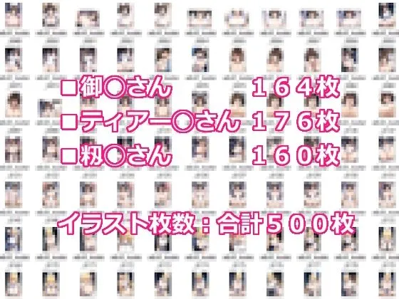 収録内容は御◯さん164枚、ティアー◯さん176枚、籾◯さん160枚で合計500枚なのよ