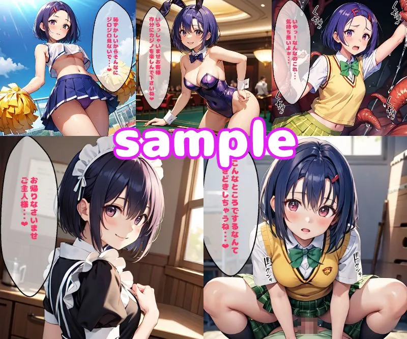 フォルダ内容は制服、チアガール、白ビキニ、触手、騎乗位、メイド服、バニーセリフ付きCG差分35枚などだよ