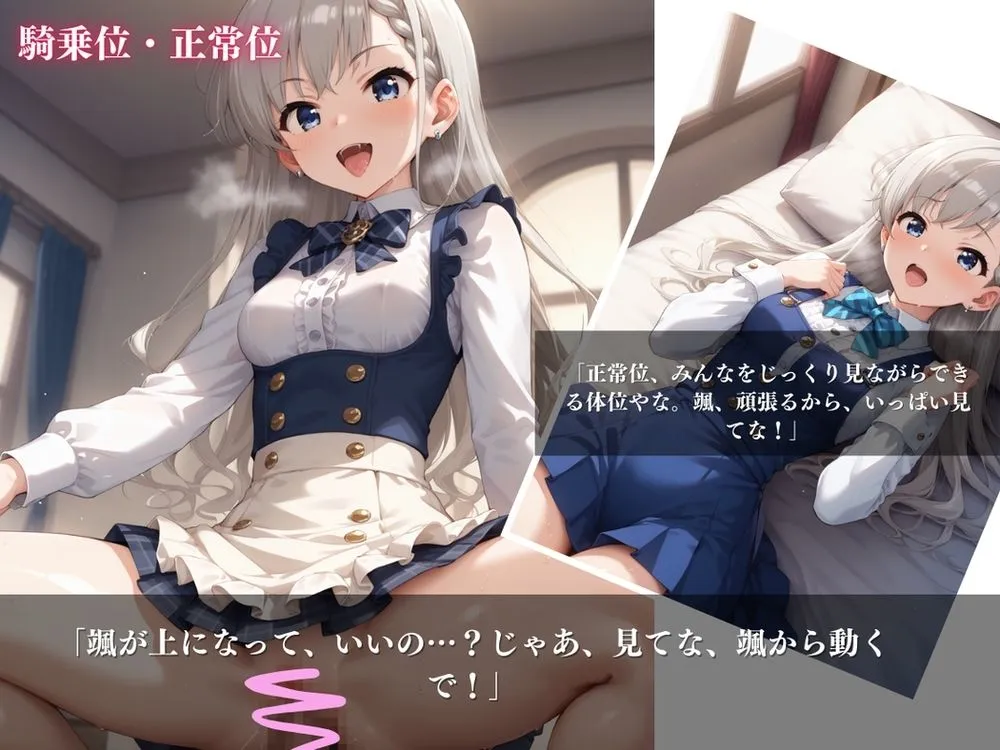 表情はそれぞれの体位にアへ顔を含む内容でお好きな表情とプレイ内容を選べるよ。くぱぁもできちゃうんやで