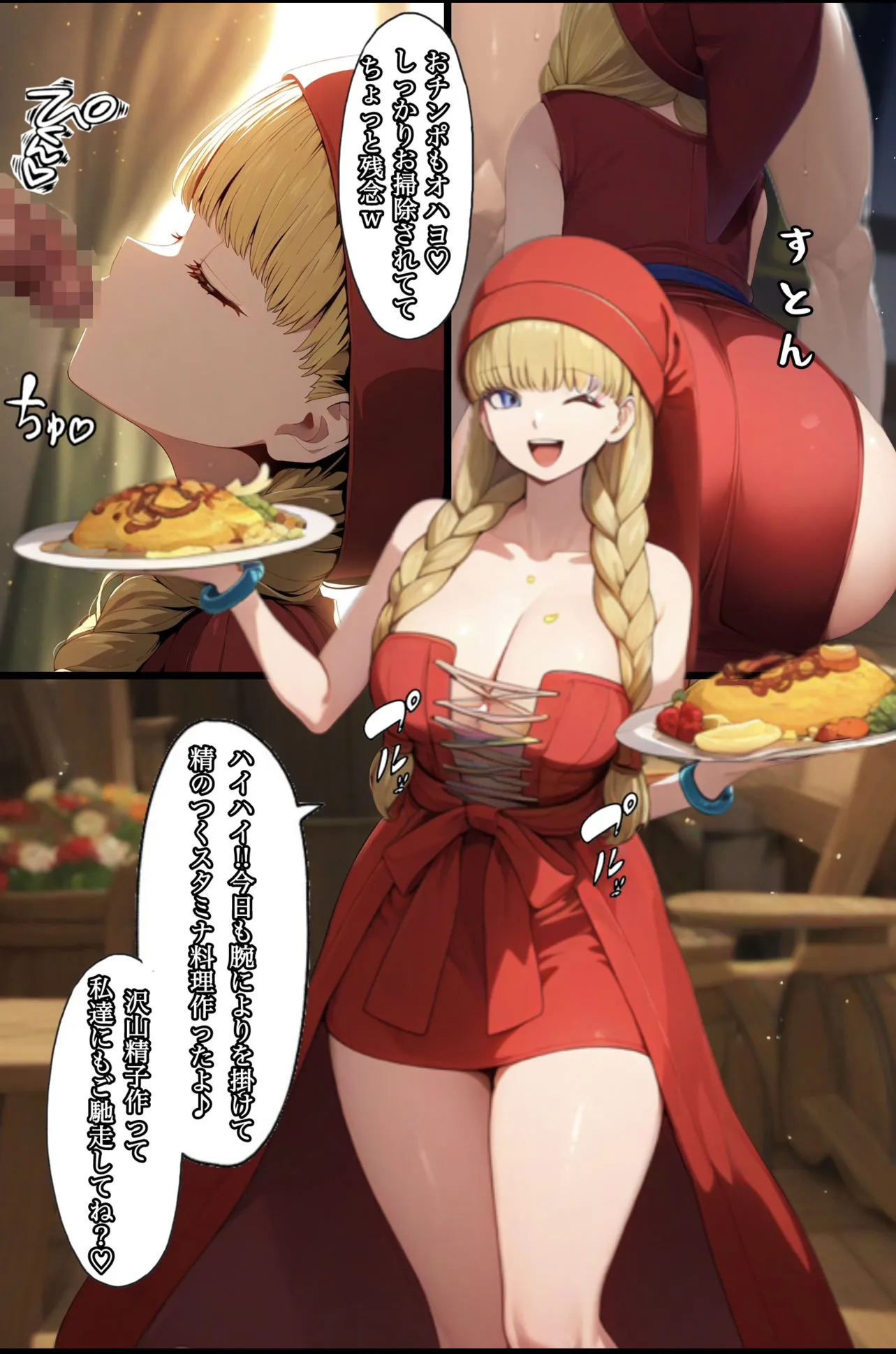 食事は主人公の精らしいんだけど、好きなだけくれて、優秀な僧侶に変身するマネマネのおかげで体力と精力が底なしなのよ